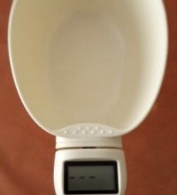 I think a wonderful idea, but sticks. I cannot use the scoop to scoop and weigh, I havs to use another scoop to gently put the dog bisciut in and it seems to get to around 65g and stops, to by pass this I have to press scoop it goes up and then comes back to a weight…but this is mainly for our holidays so that I do not have to take scales with me to weigh my dogs meals!..Love the idea just needs tweaking!..I have lived with a set of digital scales without 75g on for an eternity..I am sure I can givean extra press to vet rhe right weight! As accurate as my salter kitchen scales..once pressed and added or taken food out to get 76g..
